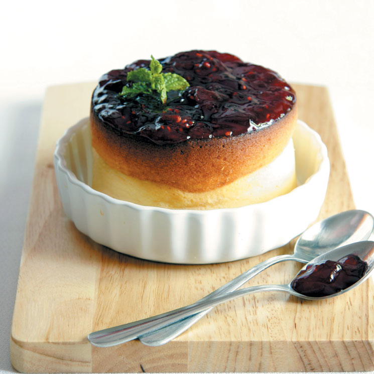 Tarta de Queso al horno cremosa, servida con helado de Iogurt y Coulis de Frambuesa